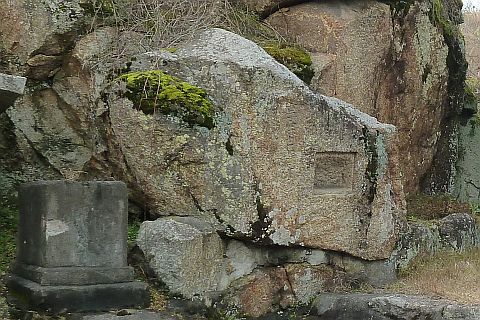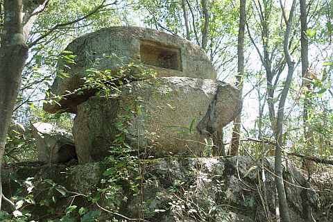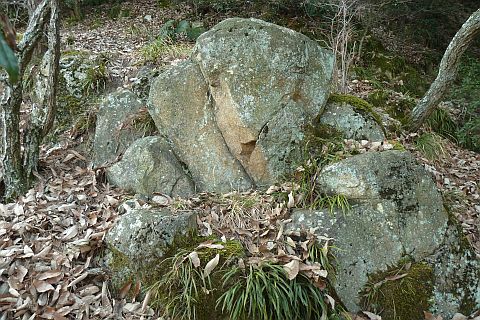 西浜の行者山の重ね岩の側面にも同じような穴が穿たれている