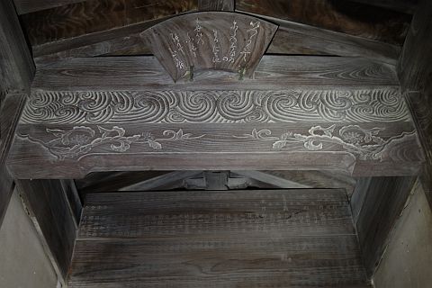 「藥師本?堂 屋根葺替 平成十二年(2000年)四月九日」と記された板あり