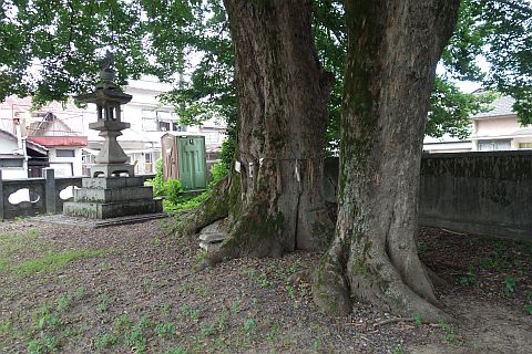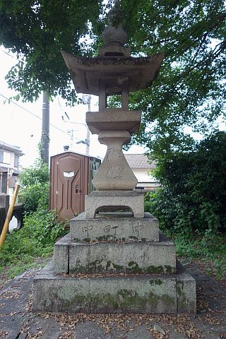 正面の石鳥居の前から北東へ96m進み、つきあたりの丁字路を左折。