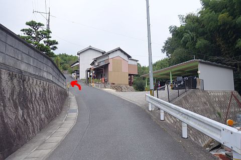 県道34号線のY字路から東(左)へ137m上る(急坂)
