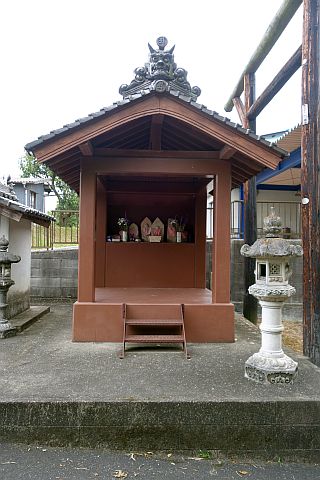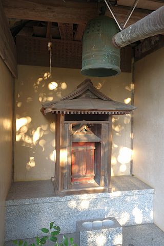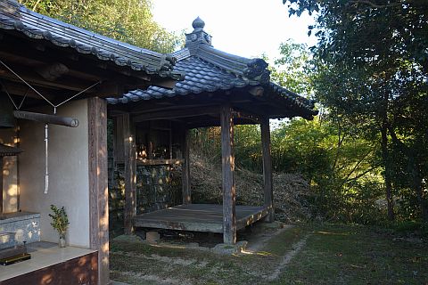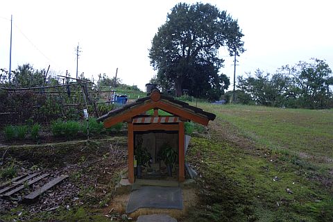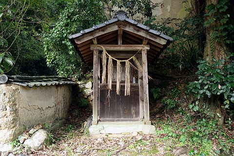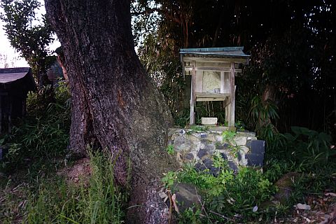 お堂の後ろの大木の根本に荒神社の小祠がある