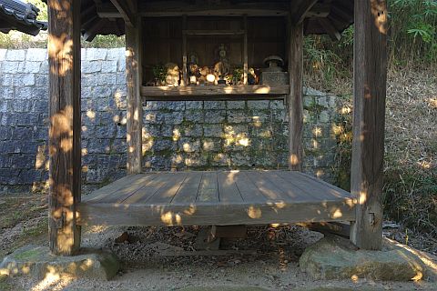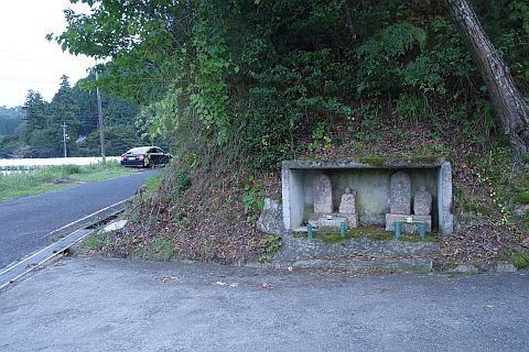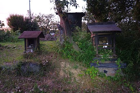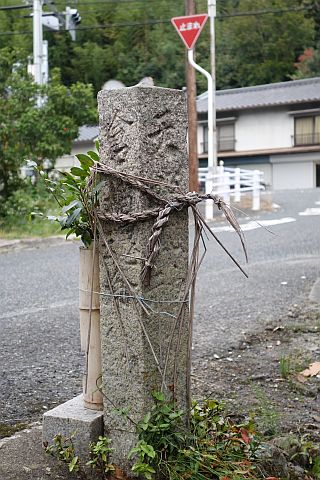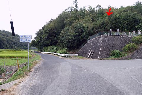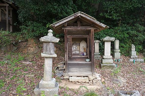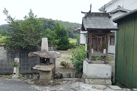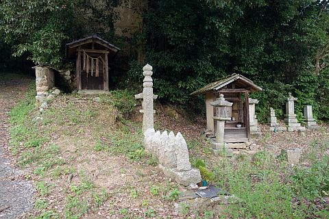 秀平寿氏宅南の山の中 道から10m上る(※十字路の角に遷座)>