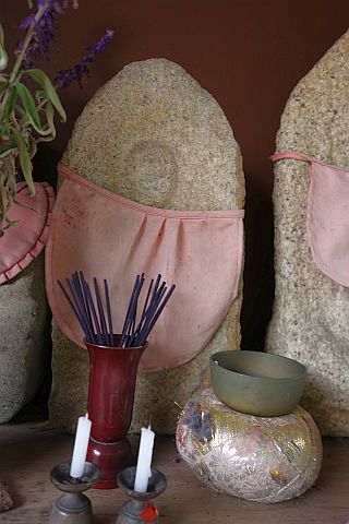 「前は神 うしろは仏 極楽の よろずの罪を くだくいしづち」