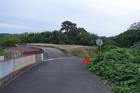五本松峠のY字路から南へ58m、南南西へ225m下る