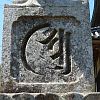 旧堂の露盤の格狭間に胎蔵界大日如来の種子「ア」