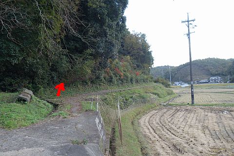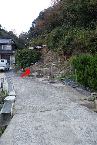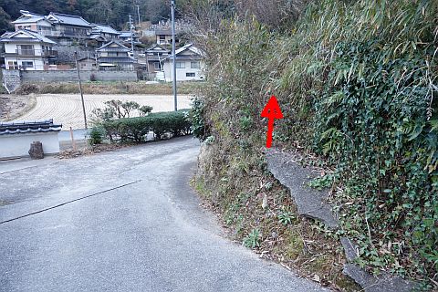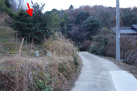 右折して墓地への参道を北北東へ40m程上る