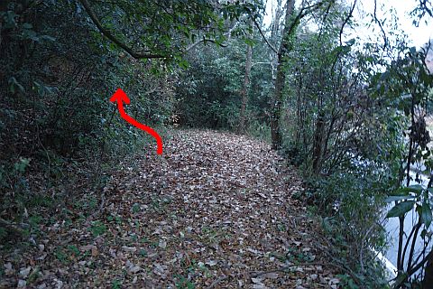 下池の西の土手から北西へ253m下る