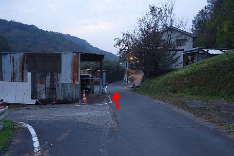 青い屋根の倉庫がある丁字路を左折し、西へ22m上る