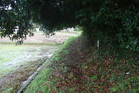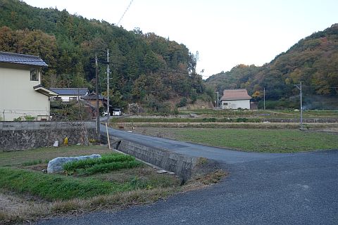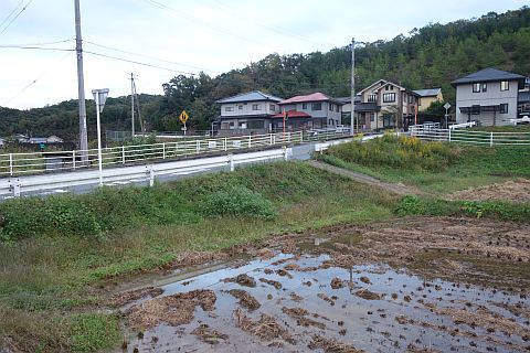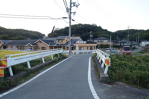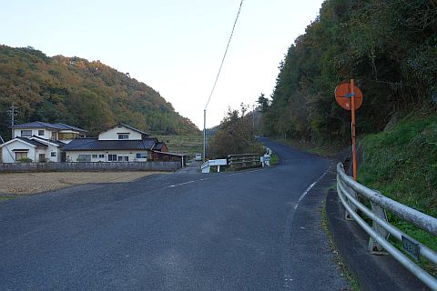 右折して民家の前の橋を渡り、左折して南へ20m進んで右折