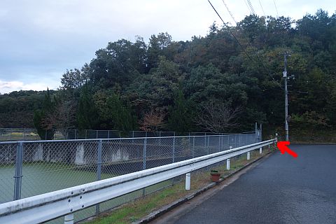 貯水槽の横を南東へ27m進み、つきあたりを左折して北東へ39m進んで左折