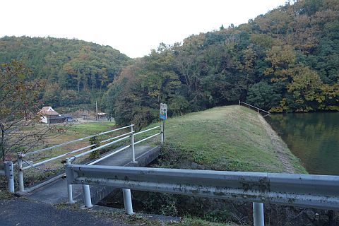 お堂の前から山際の細道を南東へ117m進み、右折して川沿いの道を南へ19m進む。