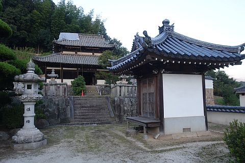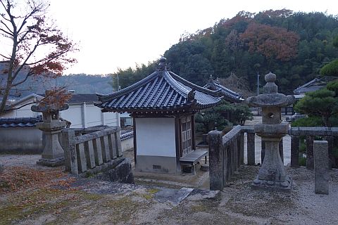 宝篋印塔の向かって右に大師堂、左前に観音堂がある