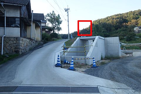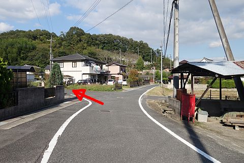 県道290号線を横断し、北北西へ78m進む。