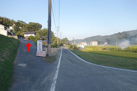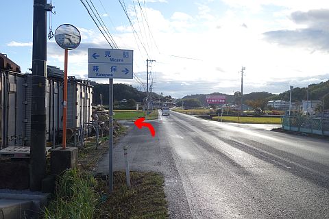 旧県道の丁字路(稲倉小学校の東)の手前で左折