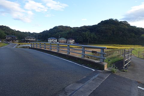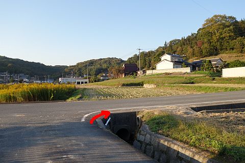 宇才田橋(うさだはし)の手前から稲木川沿いの道を南へ62m進む