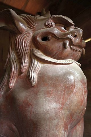 正面に随神像1対、背面に陶製の唐獅子1対が安置されている