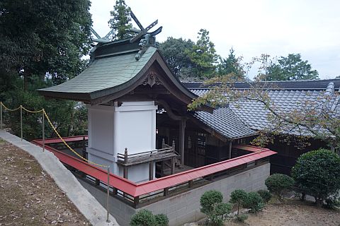 祭ル神吉備津彦命 本村ノ氏神ナリ 社内松樹林ヲ為ス」とある。