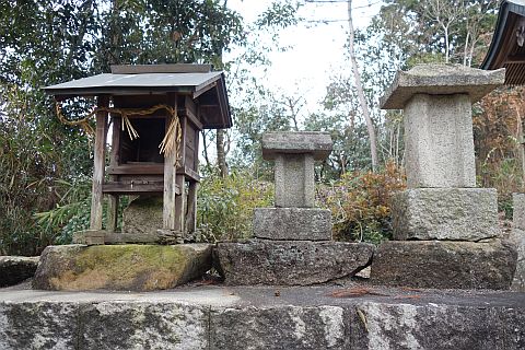 小社は大塚家、石祠は塩飽家の氏神様と思われる