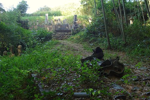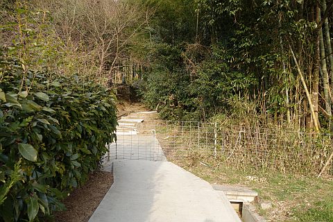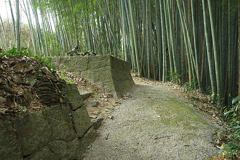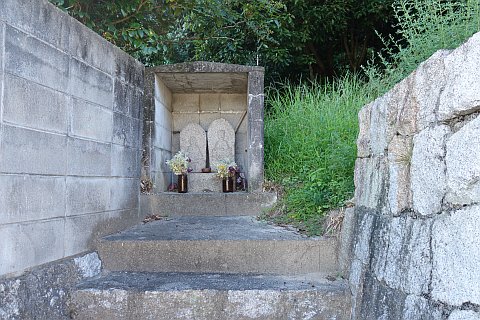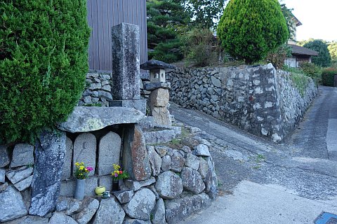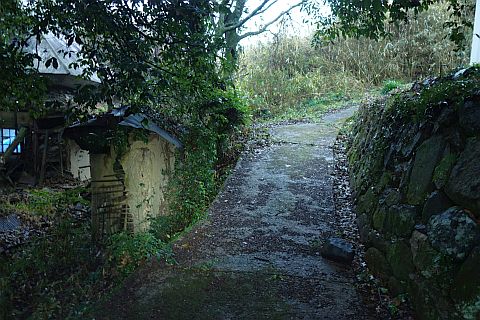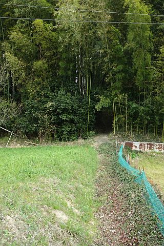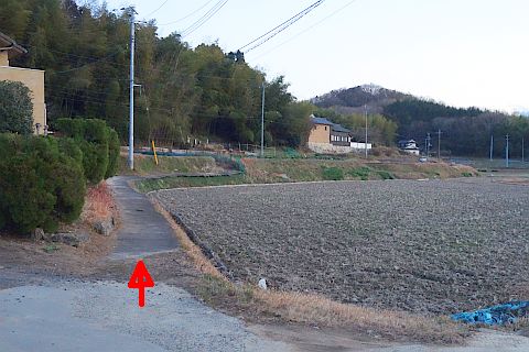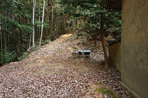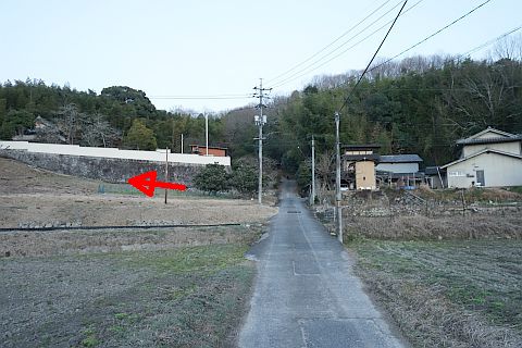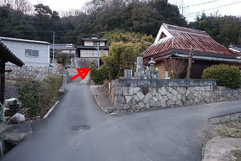 丁字路を左折して南南西へ14m上り、右折して墓地への参道を西北西へ20m上る