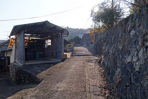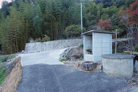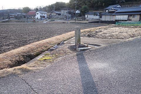 有木谷の五角柱地神の前に戻り、左折して南へ160m下る