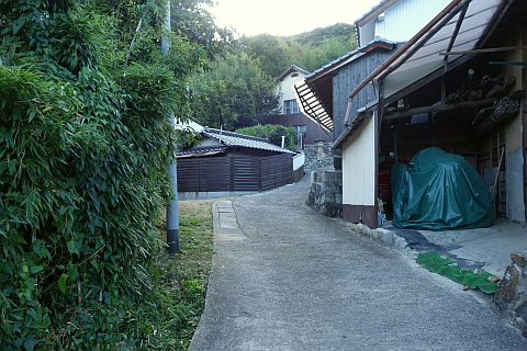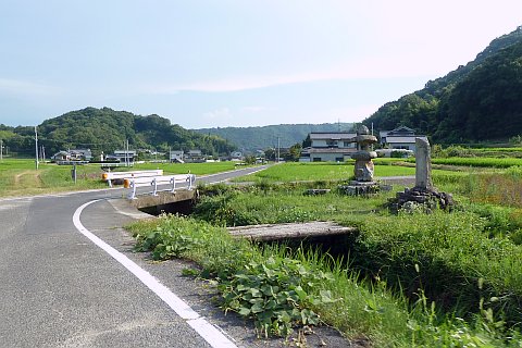 9番札所前の十字路から南南西へ55m進み、十字路から左折して南へ27m下る