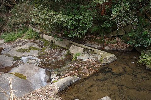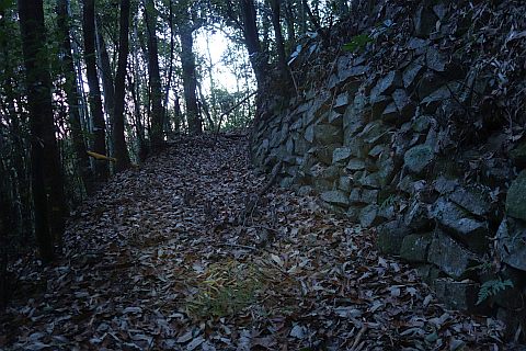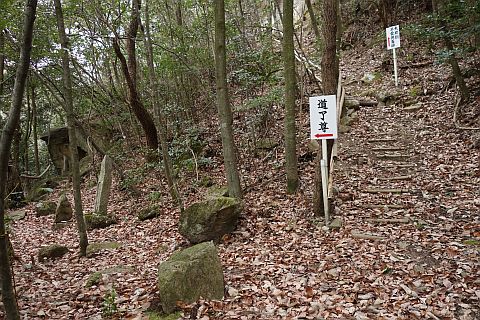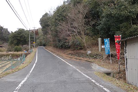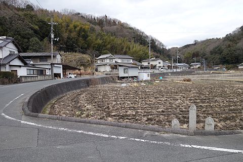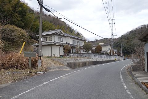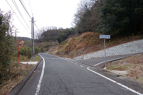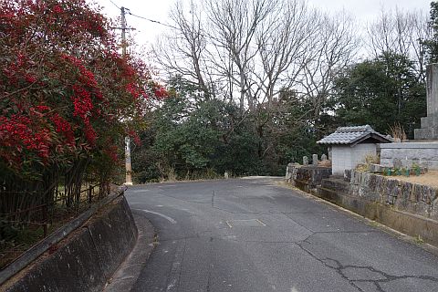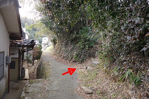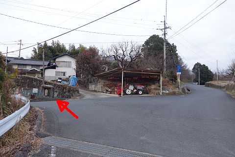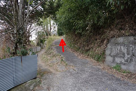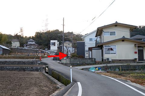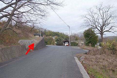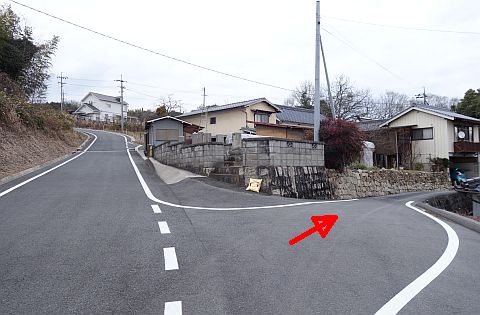つきあたりの丁字路を左折し、細道を南西へ22m上り、西へ27m進む