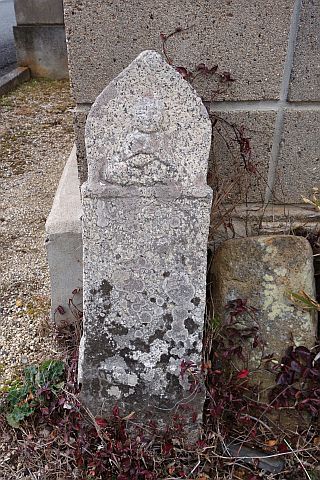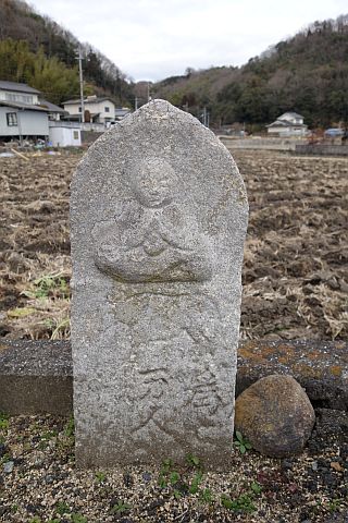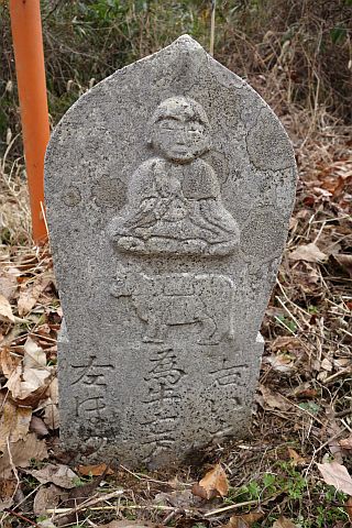 万人講供養碑兼道しるべ(地蔵菩薩坐像 + 牛?)