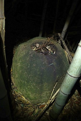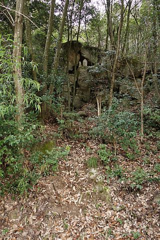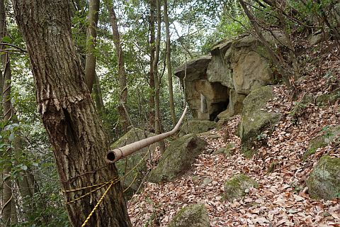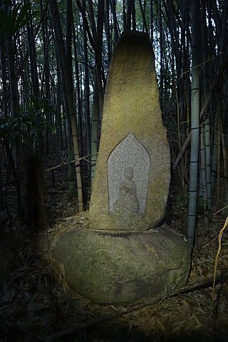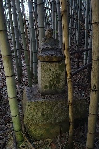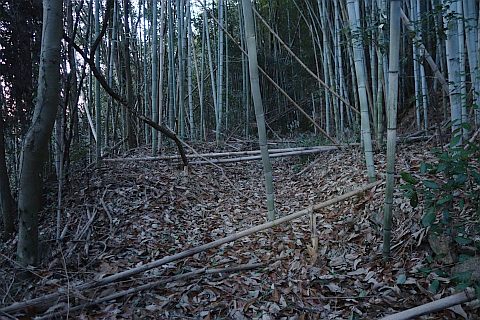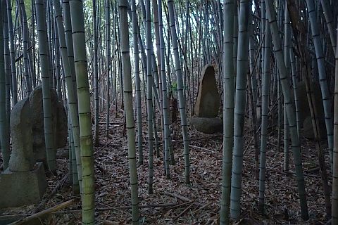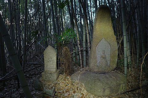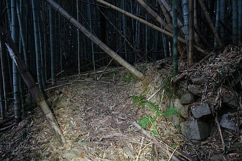 華蔵院跡は竹藪に飲み込まれ、旧堂の瓦等が散乱している