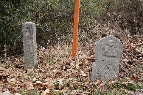 「爲亡牛 万人講」「右 だいしみち(大師道) 川上友三郎」「左 いたみ(頂見) 笠田吉右エ門」