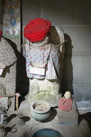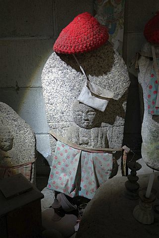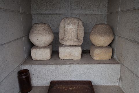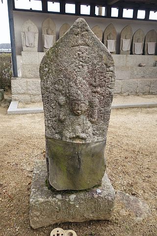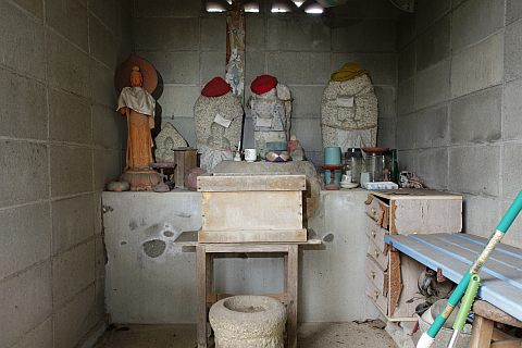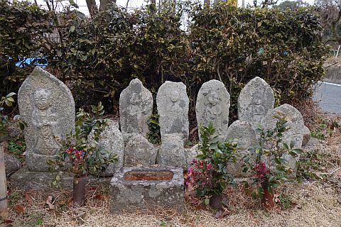 向かって左から地蔵菩薩像3体、如意輪観世音菩薩像、
