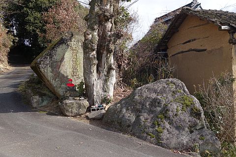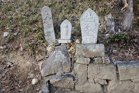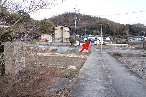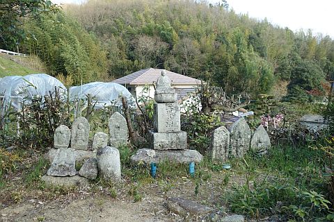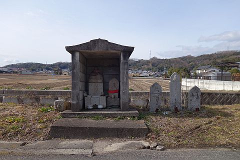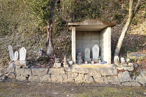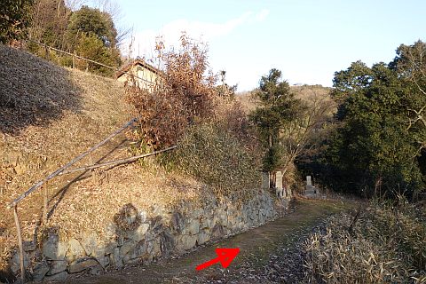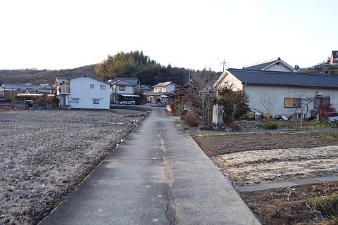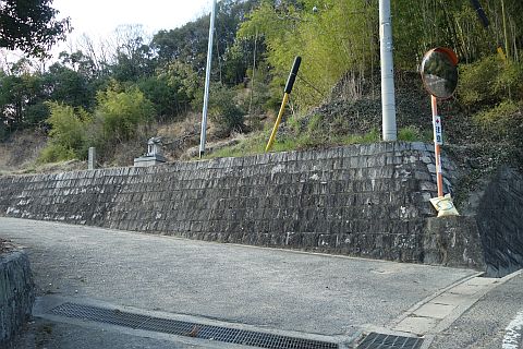 万人講供養碑兼道しるべがある五叉路に戻って左折し、東南東へ240m進む。