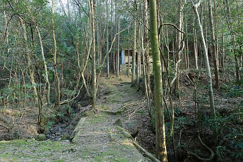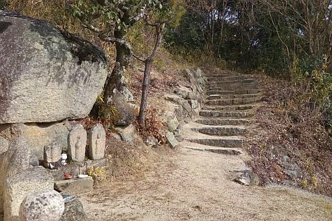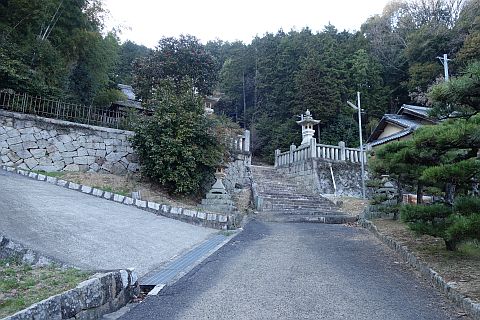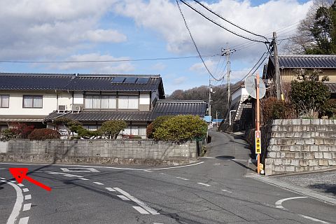 石段を下って左折し、車道を南東へ44m進む。