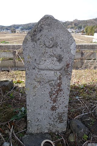 万人講供養碑(地蔵菩薩坐像 + 牛? + 馬?)