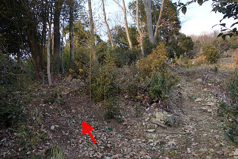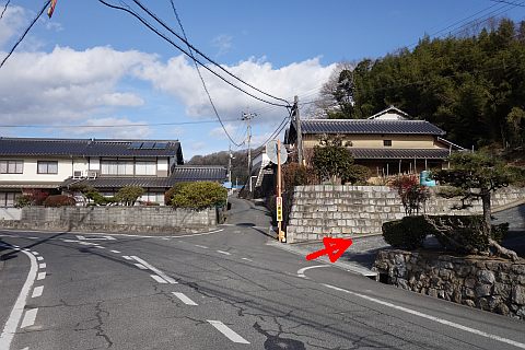 丁字路を左折し北西へ60m、右折して北北東へ76m上る