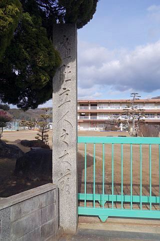 二畝十一歩ヲ寄附セラレ 校舎ノ偉觀ト相待ツテ廣