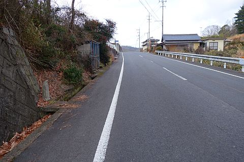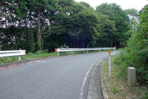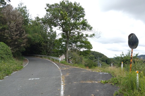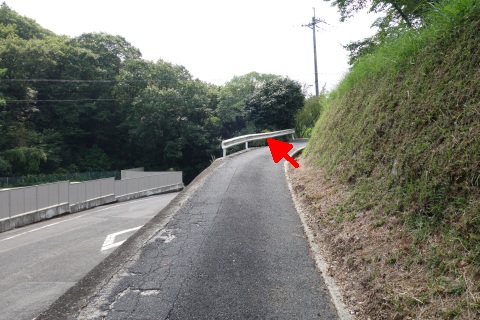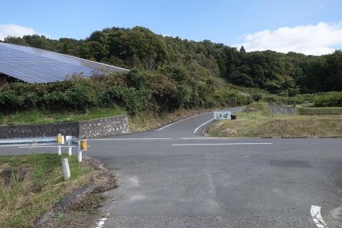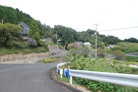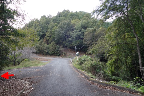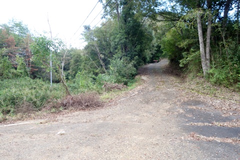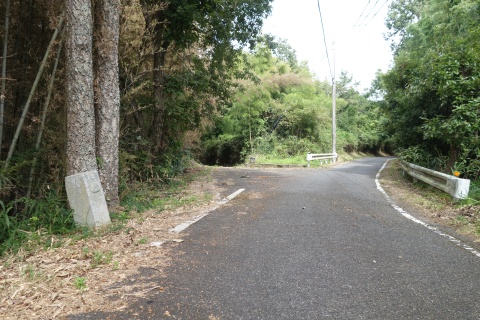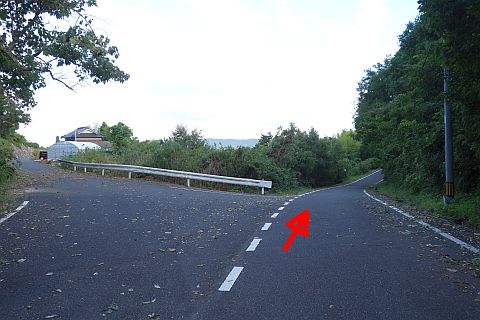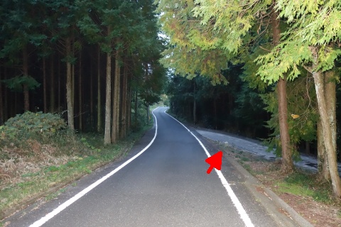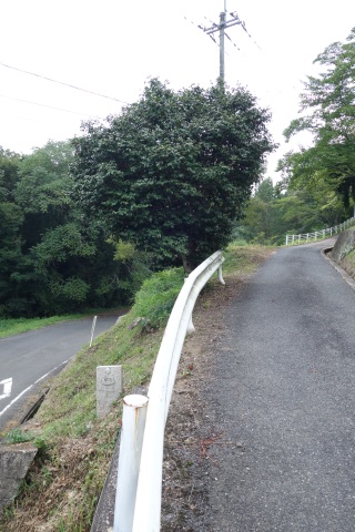 南東へ150m上り、Y字路を右折して車道を南南東へ108m上る