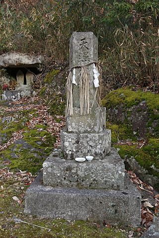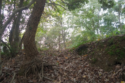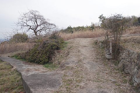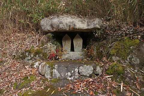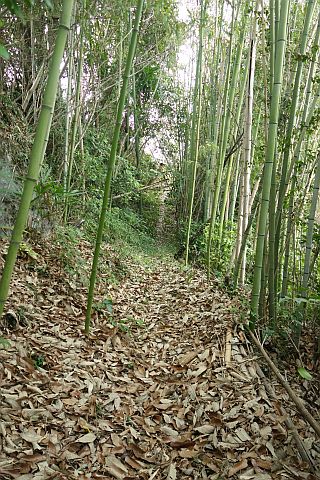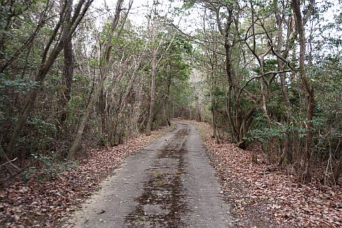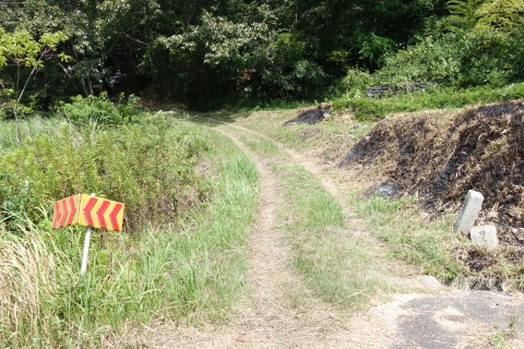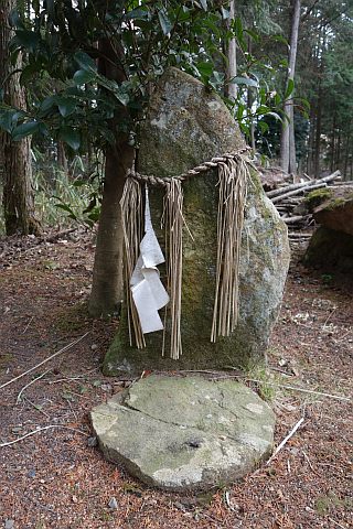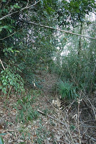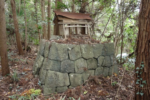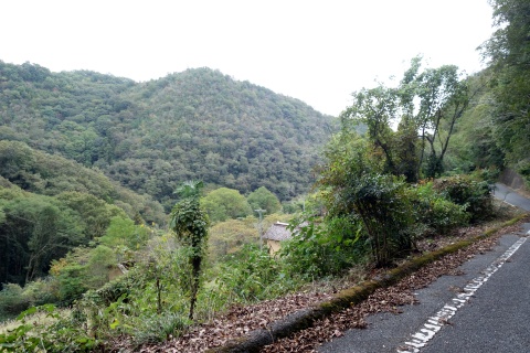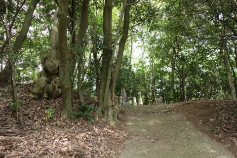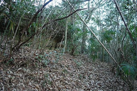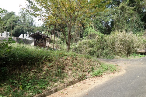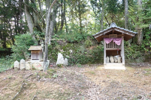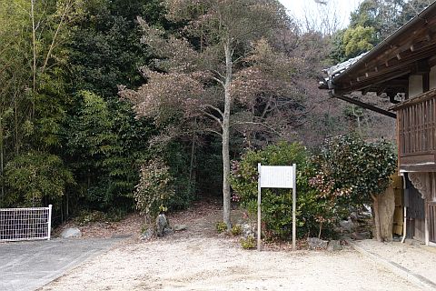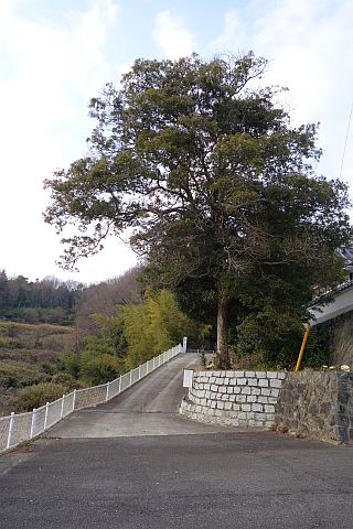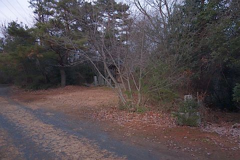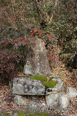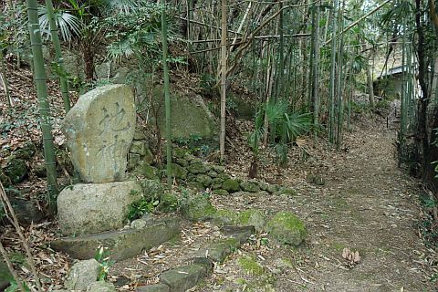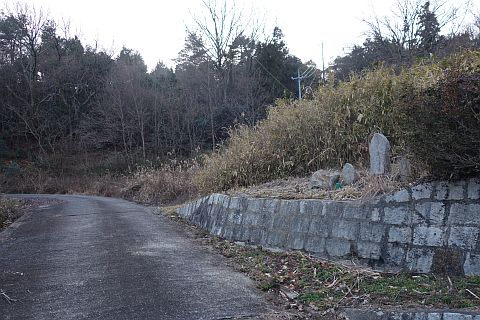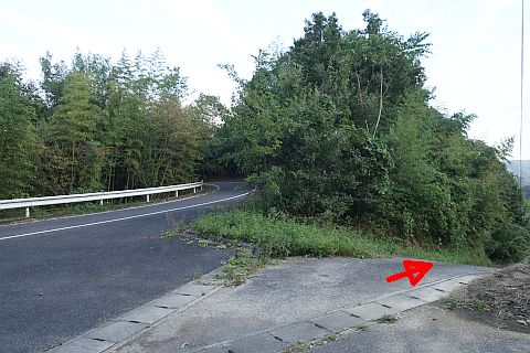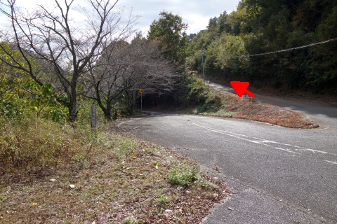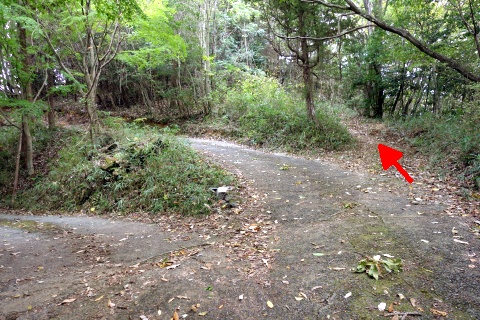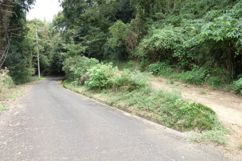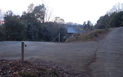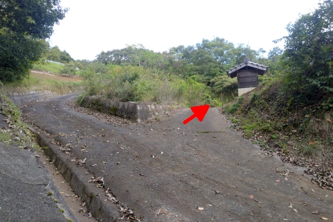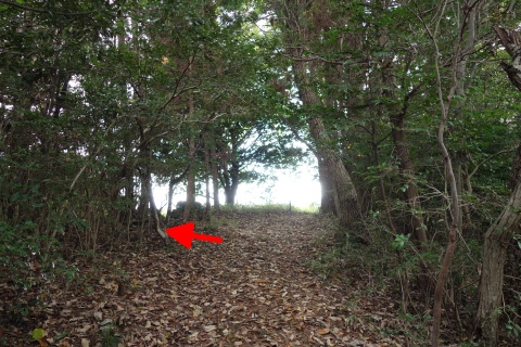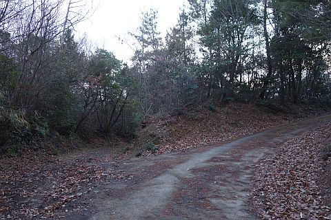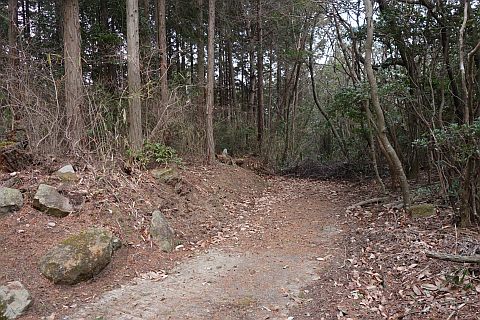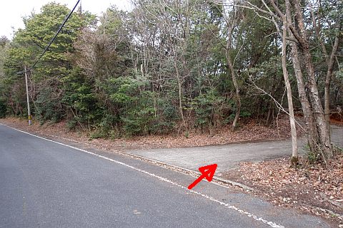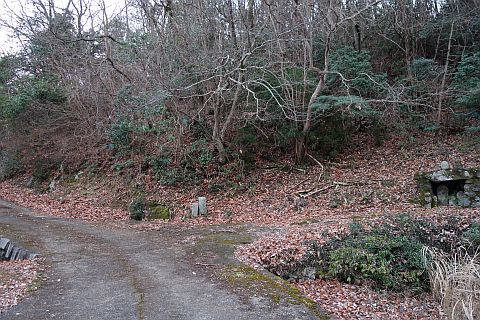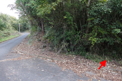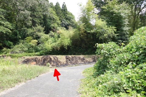 民家の横で左折し、林の中の細道を東南東へ15m程上る