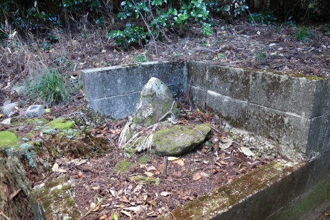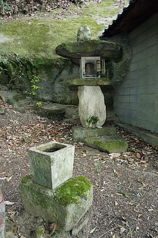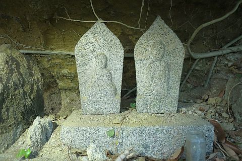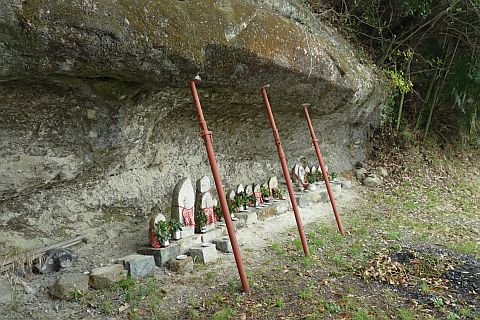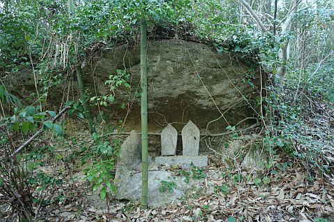 子安観音堂の向かって右(東)、浪形岩の下