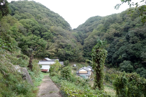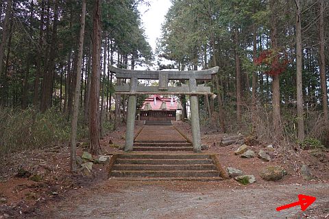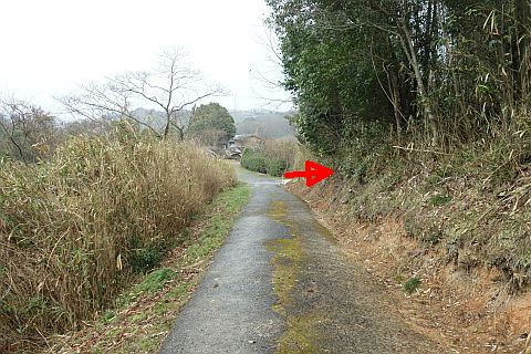 民家の裏にある参道を東へ30m進む