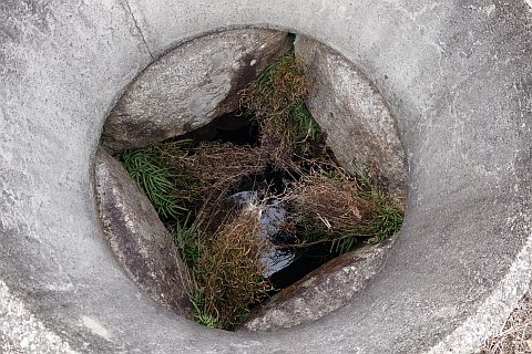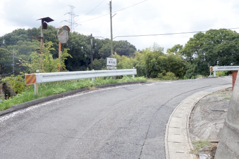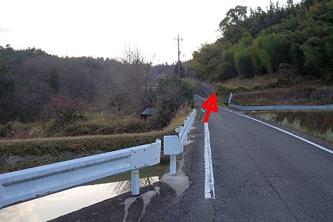 溜池の横にある丁字路を左折