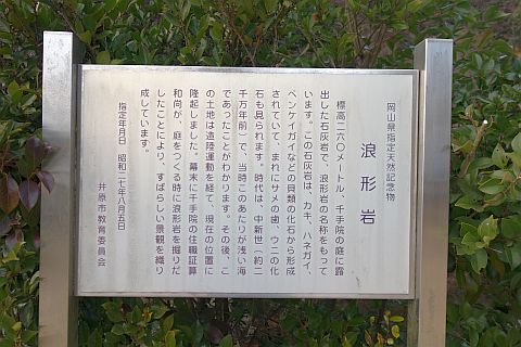「天然記念物 浪形岩」「頂見山千手院」「施主 今市 青木 ◯」
