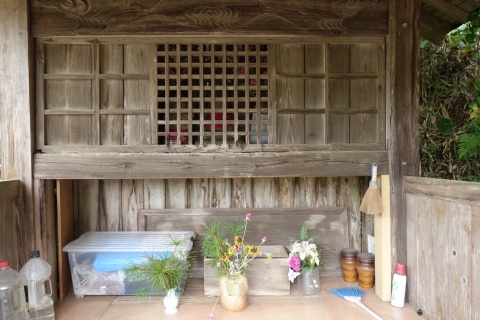北西(左)へ195m上ると千手院の下にある大師堂(75番札所)の横に出る