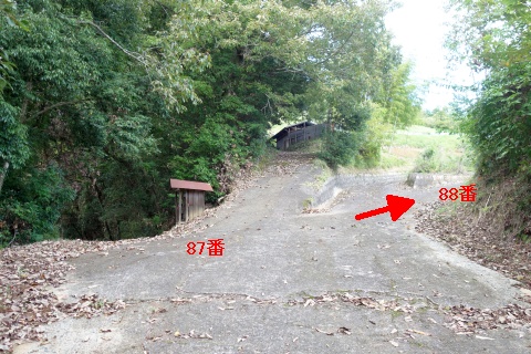 85番札所の上まで戻り、南へ90m下って丁字路を左折し、東へ115m下る