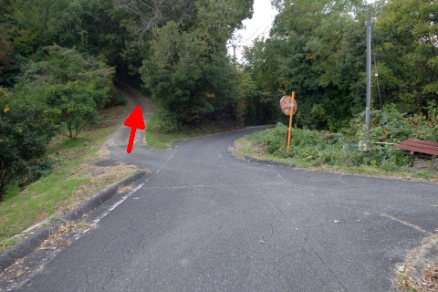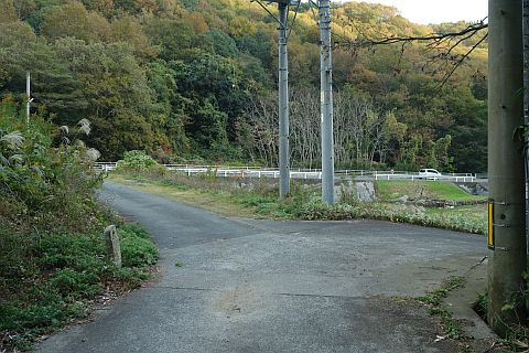 大谷集会所の向かって左(北)のY字路