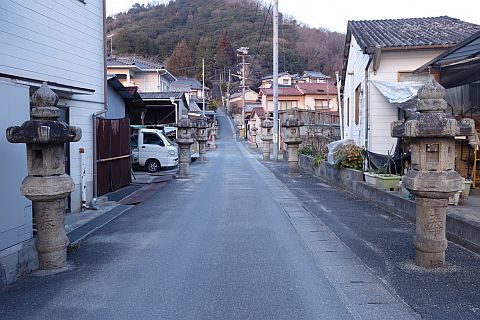 墓地の参道入口まで戻り、左折して南西へ55m進む