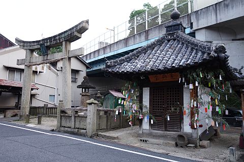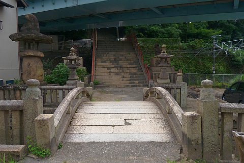 参道を北へ下り、山陽本線の上を通って鴨方往来へ