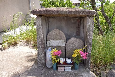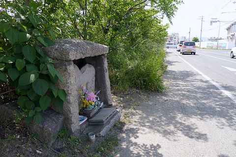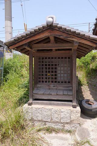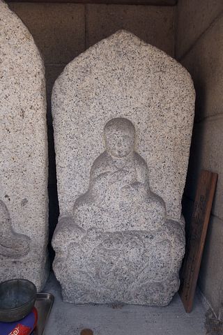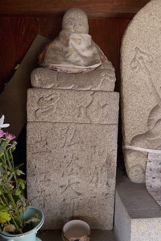 庚申塔?(弘法大師坐像 + 猿2匹)