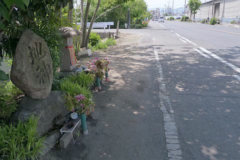 住吉神社・天神社・護穀神社の後ろに戻って左折し、東へ75m進む