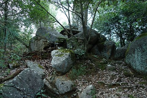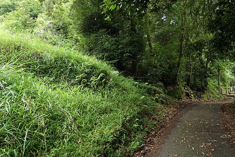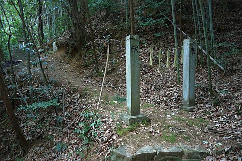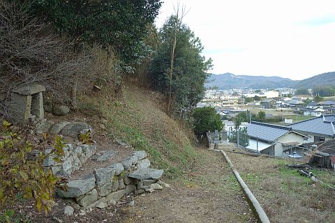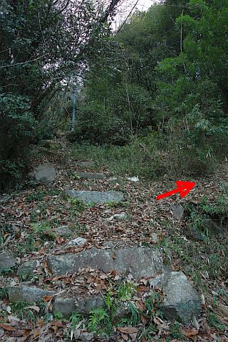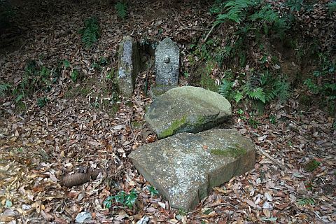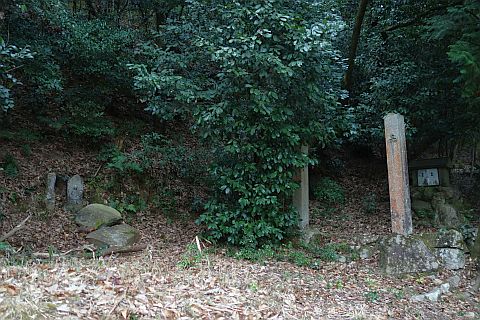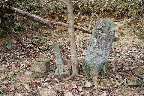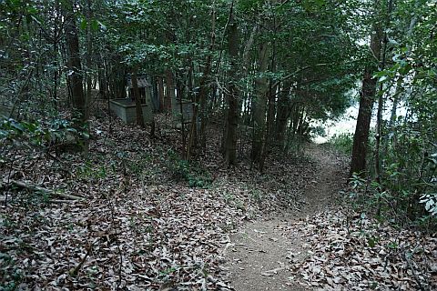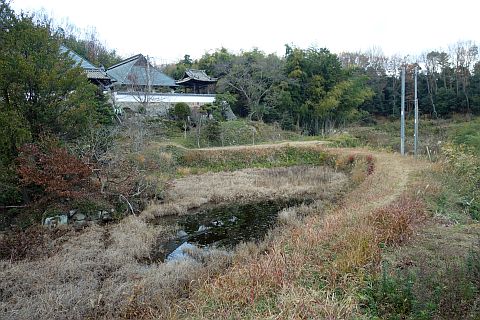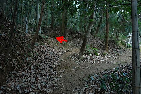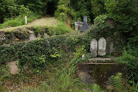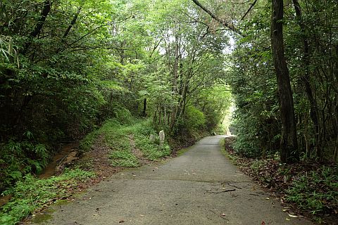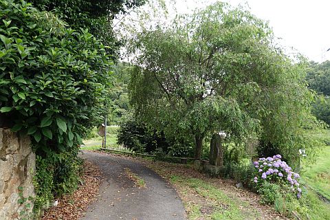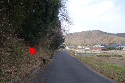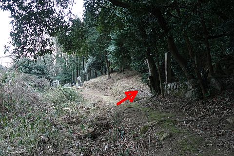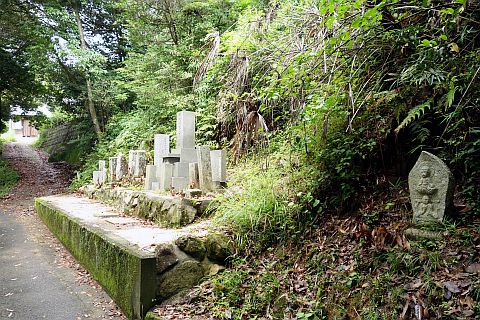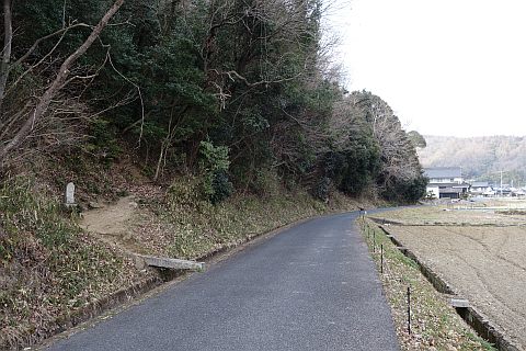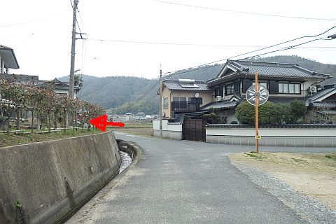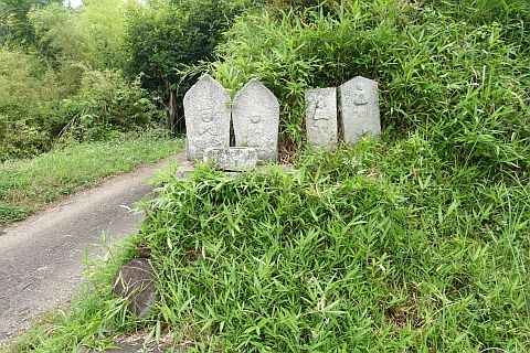 丁字路に戻り、墓地の前を通って西へ60m程進む