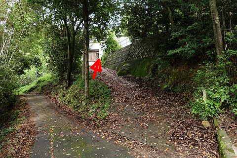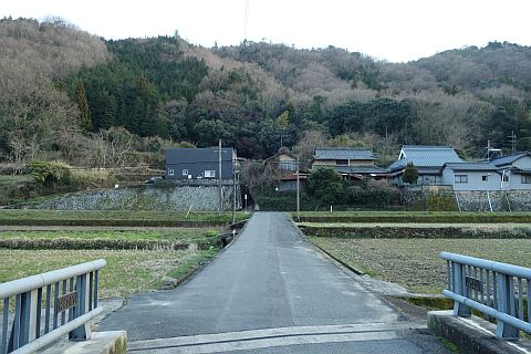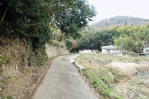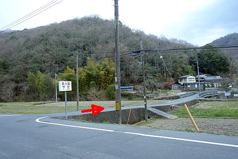 下在橋を渡って十字路に戻り、細道を南へ56m上る